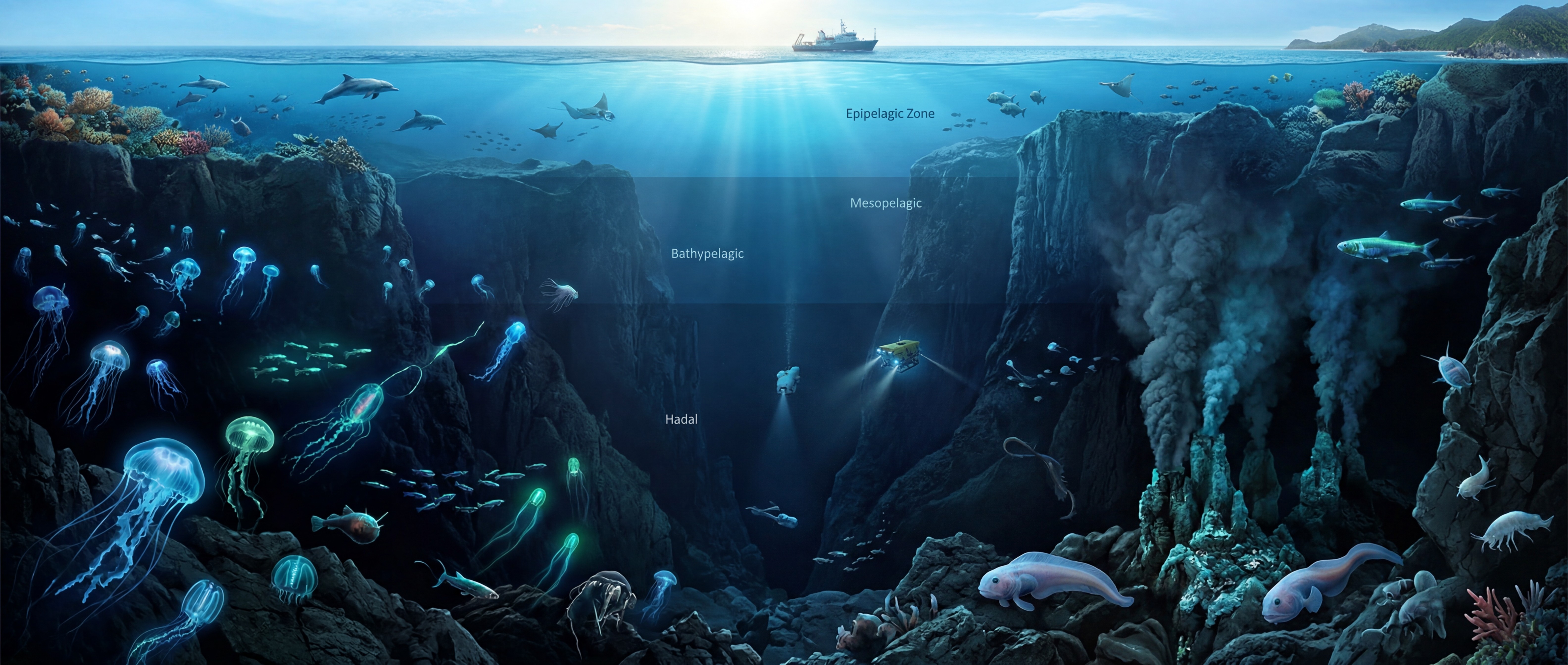 Sunlight vanishes entirely below 3,300 feet. The hadal zone begins at 20,000 feet, named after Hades, the Greek god of the underworld. The temperature hovers just above freezing. The water is ancient, having circulated from the surface centuries ago. Yet this is not a dead zone. Bioluminescent jellyfish pulse with ghostly blue light. Anglerfish dangle living lanterns to lure prey. In the deepest reaches, translucent snailfish glide through the darkness, their bodies adapted to pressures that would liquefy human tissue.